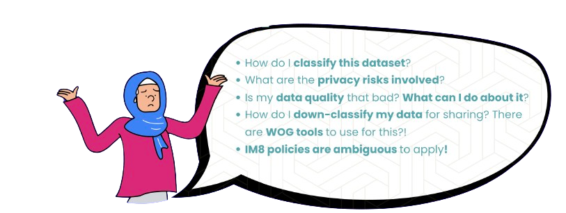 Public officers are required to assess data quality, privacy risks, and data classification when evaluating their agency's datasets, typically requested through the Standardised Data Submission Form (SDSF)—a process that is often challenging and inefficient, as confirmed by our user research.