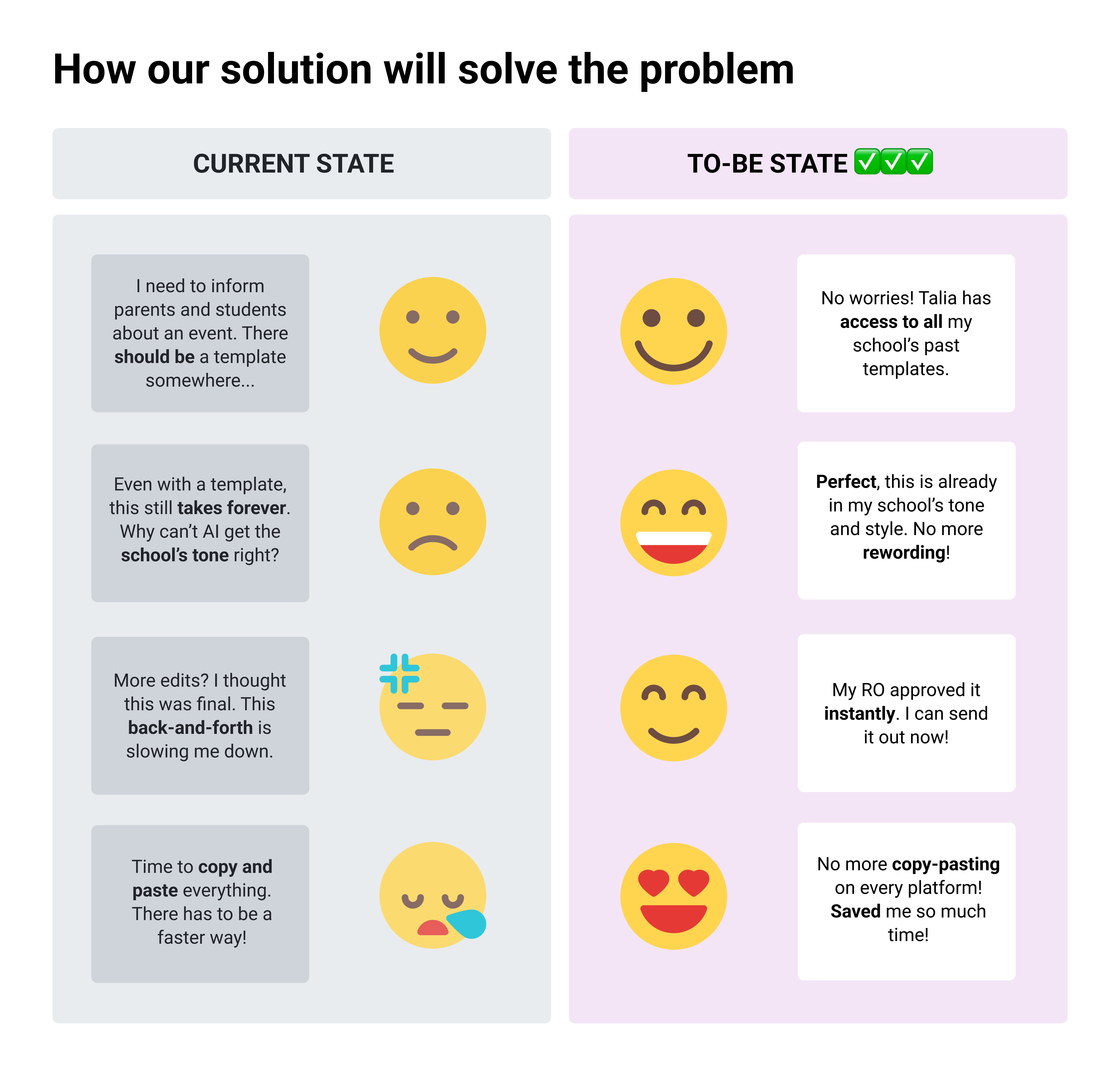 ✔️ “This is really a good platform for teachers to draft their announcements for parents with the right content within 5 minutes.” — Tan Jee Niang, Teacher, Food & Consumer Education