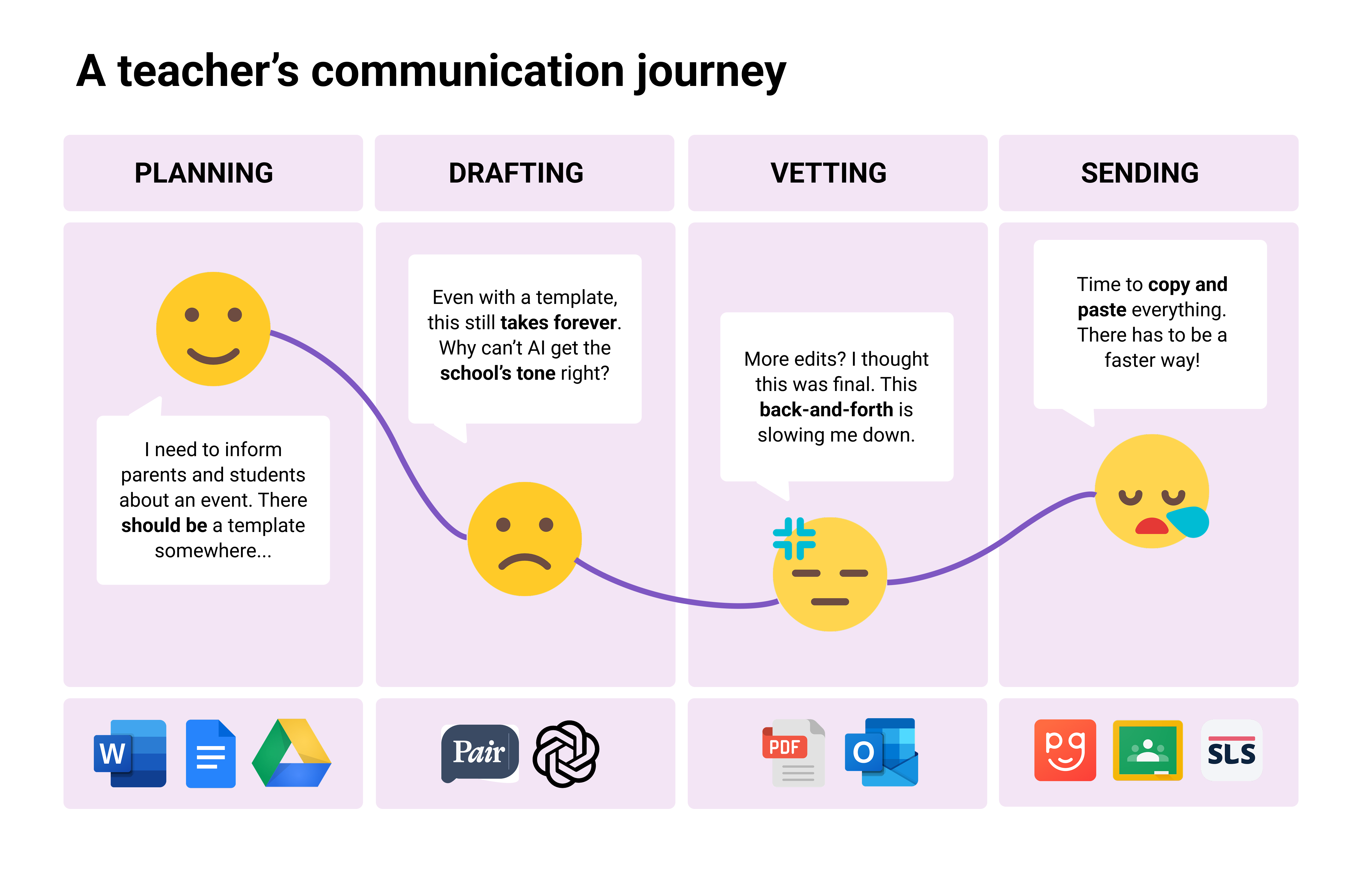 However, our research revealed a larger challenge—teachers spend a significant amount of time on administrative tasks, with communication being just one of many time-consuming responsibilities.