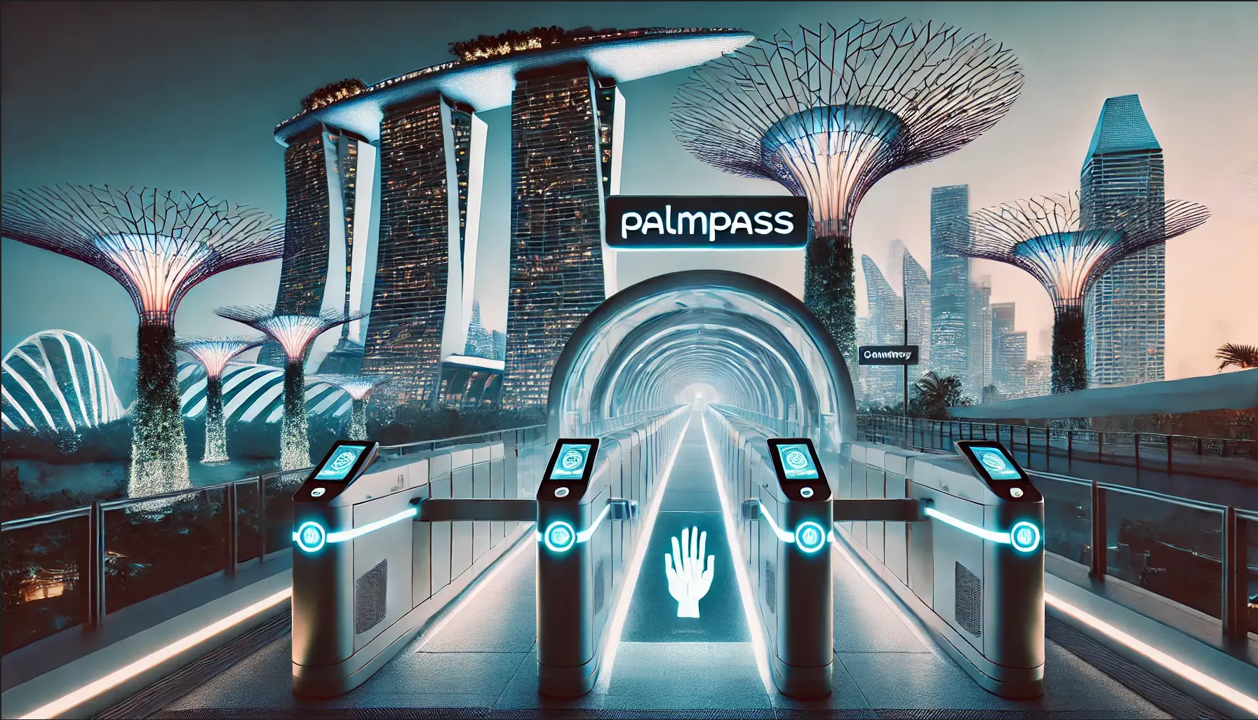 PalmPass is an operational technology solution designed for seamless onboarding, with an additional web page that enables users to register their payment method. The system utilizes a palm vein scanner integrated with a gantry to trigger its opening and a payment gateway for automated fare deduction.